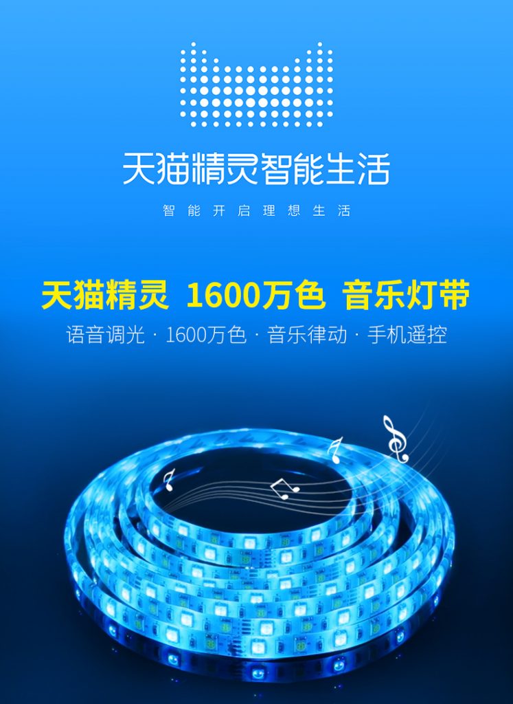 配合天猫精灵,语音控制灯带的颜色以及模式,具有音乐律动功能,已经申请专利。